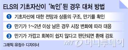 이미 녹인된 ELS를 가지고 있는 경우는 어떨까. 해당 ELS의 기초자산에 대한 전망과 상품의 구조, 만기를 고려해 판단할 문제다. 대우증권 관계자는 "녹인을 터치했다고 남아 있는 조기상환 기회까지 없어지는 건 아니다"라며 "잔존 만기가 최소 1~2년이상 남아 있다면 성급하게 환매 결정을 하기보다는 시장변화를 보면서 대응하는 게 좋다"고 말했다. 다만 녹인 직전의 ELS의 경우 녹인이 발생하고 난 이후 지수 회복이 쉽지 않다고 판단되면 환매를 하는 것도 방법이라는 게 증권사 관계자의 설명이다.