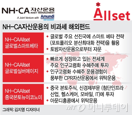 한 대표는 NH-CA에서 비과세 해외펀드로 새롭게 내건 'Allset 글로벌 스마트베타 펀드'와 'Allset 중국본토 뉴이코노미 펀드'도 조만간 가입할 예정이다. 'Allset 글로벌 스마트베타 펀드'는 분산투자 극대화전략으로 글로벌 특허를 보유한 토밤(TOBAM)자산운용의 자문을 받아 운용한다. 토밤자산운용은 똑같은 전략으로 3조5000억원이 넘는 자금을 운용하고 있다. 자문을 통해 복제할 펀드인 AB월드 펀드는 2011년 1월 설정된 이후부터 지난해말까지 누적으로 97.53%의 성과를 기록해 MSCI월드 지수 수익률 -7.51%를 큰 폭으로 웃돌았다.