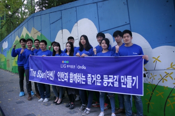 LIG투자증권은 신규 채용 전제로 입사한 인턴사원 18명이 지난 22일 서울 동작구 동작고에서 벽화 그리기 봉사활동을 실시했다고 24일 밝혔다.