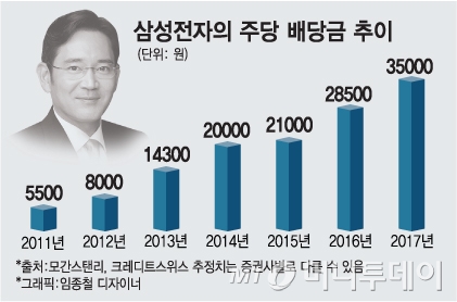 2015년 2만원이던 주당배당금은 2016년 2만8500원, 2017년에는 3만5000원에 이를 것으로 분석했다. 배당수익률은 지난해 1.2%에서 올해 1.7%로, 2017년에는 2.1%로 기대했다.