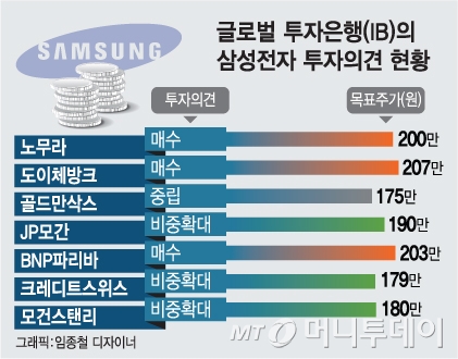 ◇"주주정책 강화 인상적…주가 비상할 것"=삼성전자의 주주환원 정책에 대해 글로벌 IB(투자은행)들은 "시장의 기대치를 충족시키는 정책"이라며 "발표된 것보다 더 확대될 가능성도 있다"고 입을 모았다.