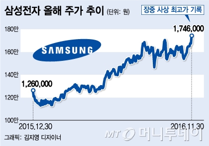 한 센터장은 "배당 증대는 삼성전자가 낮은 밸류에이션을 극복하기 위한 최소 필요조건"이라며 "50%의 주주환원으로 배당금 증액과 더불어 2017년에도 약 5조원 가량의 자사주 매입도 기대할 수 있겠다"고 분석했다.