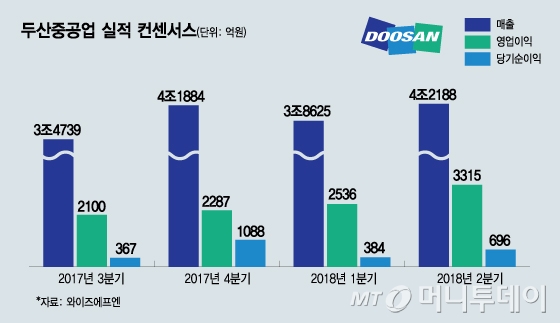 ◇원전 공사 재개, 4Q 이후 수익성 '숨통'…주가는 '밋밋'=신고리 원전 5·6호기 건설 재개 권고 이후 정부는 지난 24일 국무회의에서 공사 재개를 의결했다. 이에 따라 두산중공업은 2조3087억원대 신고리 원전공사 대금 가운데 도급 잔액 1조1300억원을 확보하게 됐다.