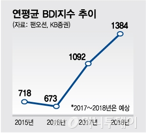 벌크선 운임지수인 BDI( 발틱운임지수)가 2016년 1분기 290에서 그해 말에 900선으로 반등했고 현재는 1500선까지 상승했다. 현대중공업, 현대미포조선 등 조선사에는 해운사들의 선박 발주소식이 이어진다.