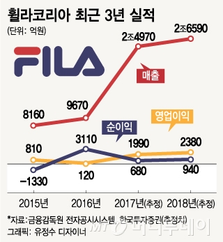 무엇보다 지난해 310억원 영업손실을 냈던 국내 사업이 3분기 흑자전환에 성공한 점이 의미가 크다. 휠라는 목표 소비자층 연령대와 가격대를 낮춘 전략으로 의류와 신발 제품 출시를 강화하고 있다. 그 효과로 국내 매출이 9%대 성장, 시장 추정치를 크게 웃돌았다.