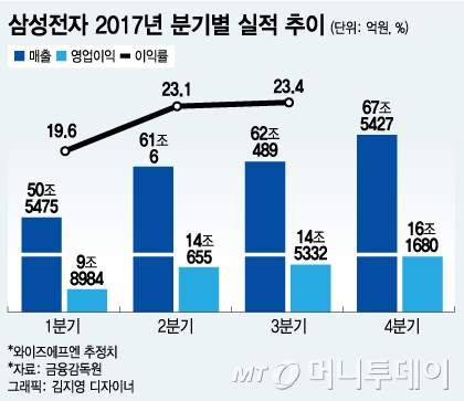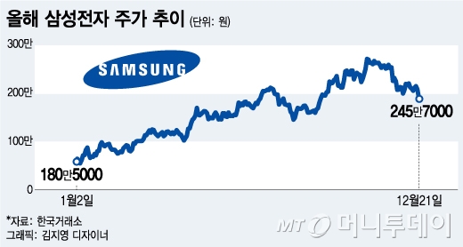 김동원 KB증권 연구원은 "최근 삼성전자 주가는 내년 반도체 사이클 논란과 원화강세 우려 등으로 하락했지만 적어도 내년 상반기까지 타이트한 메모리 수급이 지속될 것"이라며 "글로벌 메모리 시장에서의 강력한 시장입지와 탁월한 원가절감 능력 등을 고려하면 내년에도 반도체 부문 이익 창출력은 뛰어날 전망"이라고 했다.