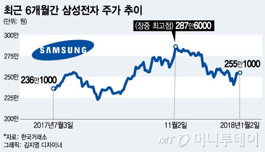서보익 유진투자증권 연구원은 "최근 삼성전자의 주가 조정은 지난해 4분기 실적 하향의 노이즈가 기반영된 것으로 판단해도 무방하다"면서 "오는 9~12일 진행되는 CES(소비자가전전시회)를 계기로 2018년 1월부터 반도체 IT주의 모멘텀은 회복될 것으로 기대한다"고 말했다.