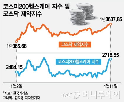 코스피200헬스케어 지수는 전 거래일보다 0.38% 오른 2718.55에 마감했고 4월 들어서만 9.6% 상승했다. 코스닥 제약지수도 1.07% 올랐고, 이달 들어 10.3% 상승했다.