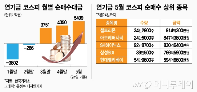 [내일의전략]5월 연기금 순매수 상위 종목 '셀트리온·아모레퍼시픽·SK하이닉스'