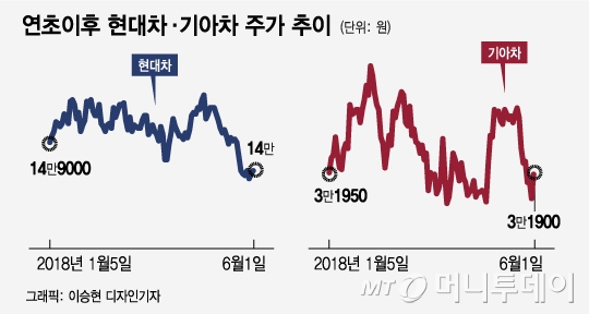김경덕 부국증권 연구원은 "하반기부터는 신형 싼타페 미국 출시와 투싼 F/L 등 SUV 라인업을 강화해 현대·기아차의 판매 회복이 본격화되고 주가 역시 부진을 탈피할 것"이라며 "특히 미국시장에서 재고와 인센티브가 감소하는 등 긍정적인 신호가 나타나고 있다"고 설명했다.