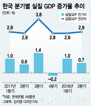 소재용 하나금융투자 이코노미스트도 "한국 경제에 대한 부정적 인식이 늘어나고 있다"며 "국내 주요 연구기관에 이어 한국은행과 기획재정부도 올해 한국의 경제성장률 전망치를 2.9%로 낮춘 가운데 하반기 국내 경제는 다소 부진할 공산이 크다"고 전망했다.