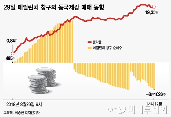 ◇메릴린치 창구, 동국제강 매매로 '짭짤한 수익' 추정=코스피 중형주인동국제강(10,810원 ▼370 -3.31%)은 전일 부산공장 가동을 재개한다는 호재성 공시를 냈다. 때마침 이날 KTB투자증권에서는 동국제강에 대한 분석 개시 리포트도 공개했다. KTB투자증권은 글로벌 조선 시장에서 신규 발주가 상승하는 국면에서 후판 수요가 증가함에 따라 동국제강의 수혜가 예상된다는 분석을 제시했다.