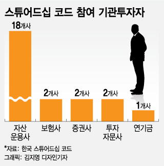 다만 영세한 자산운용사들이 비용 부담 등 현실적인 이유로 부담을 느끼는 곳이 적지 않다. 살제 스튜어드십 코드를 도입한 자산운용사는 전체 226개사 중 8%에 해당하는 18개사에 그쳤다.