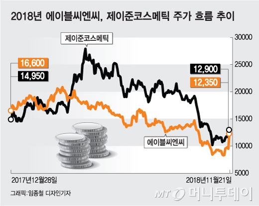 21일 코스피 시장에서에이블씨엔씨(11,900원 ▲340 +2.94%)는 전일대비 2840원(29.86%) 오른 1만2350원에 마감했다.토니모리(6,700원 0%)는 21.76% 급등했고,제이준코스메틱(9,370원 ▼60 -0.64%)도 11.21% 강세였다. 그밖에아모레퍼시픽(130,200원 ▼100 -0.08%)도 3.33% 올랐고아모레G(27,250원 ▼400 -1.45%)도 4.55% 상승 마감했다.