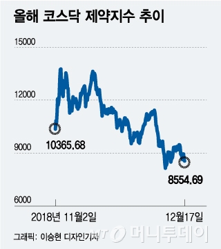 17일 한국거래소에 따르면 올 들어 코스닥 제약지수는 8554.7로 마감해 전 거래일 대비 121.7포인트(1.4%) 하락했다. 이는 연초 대비 17.5% 가량 하락한 수준이다.