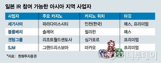 일본 정부가 추진하는 IR(복합리조트) 사업은 파라다이스에도 적지 않은 영향을 미칠 전망이다. 지분율 45%로 파라다이스와 합작해 파라다이스시티를 공동 개발, 운영하는 세가마시홀딩스가 IR 사업자 선정을 노리고 있기 때문이다.
