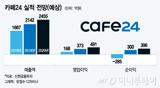 이는 카페24 실적이 올해부터 본격적으로 성장할 것으로 전망되는 등 비교적 탄탄한 펀더멘탈이 배경이 된 것이란 평가다. 신한금융투자는 카페24의 올해 매출액이 2142억 원, 영업이익이 373억 원으로 전년대비 각각 약 28.4%, 약 122% 증가할 것으로 예상했다.