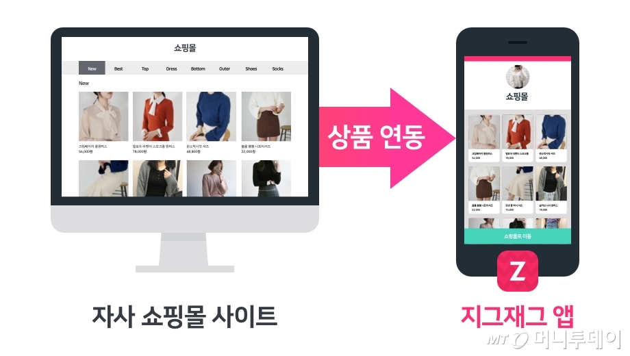 카페24(25,850원 ▼1,100 -4.08%)는 여성 쇼핑몰 모음 애플리케이션(앱) '지그재그' 상품 연동 서비스를 출시했다고 19일 밝혔다.
