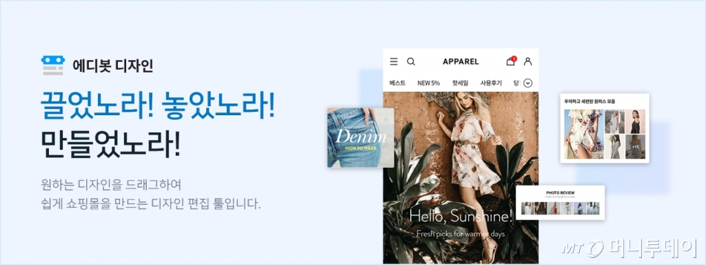 500여개 무료 제공 디자인 콘텐츠로 온라인 쇼핑몰 디자인 제작 및 편집 가능