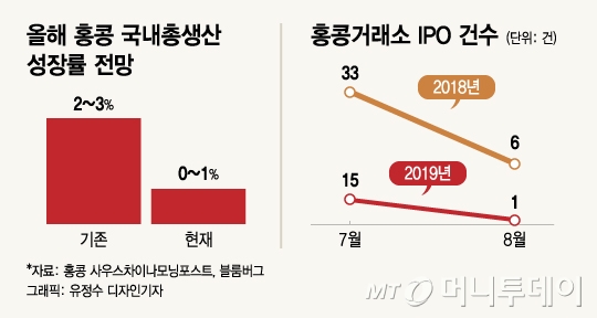 실제로 홍콩의 반중국 시위가 격화하면서 중국 최대 전자상거래업체 알리바바가 홍콩 증시 상장 계획을 연기한 바 있다. 외신에 따르면 7월 한달간 홍콩증권거래소에 상장한 기업 수는 15곳으로 전년 대비 반토막 났고, IPO를 통해 조달한 자금 규모 역시 17억달러로 57% 감소했다. 홍콩에서 송환법 반대 시위가 처음 발생했던 지난 6월 이후 3개 기업이 111억달러 규모의 IPO 계획을 연기했다.