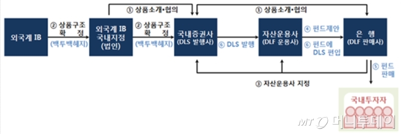 투자원금 전액손실을 불러온 해외금리 연계 DLF는 △외국계 투자은행(IB, 상품제안) △국내 증권사(DLS 발생) △자산운용사(DLF 운용) △은행(DLF 판매)이 수수료 수취를 목적으로 역할을 분담해 탄생한 파생결합상품이다.