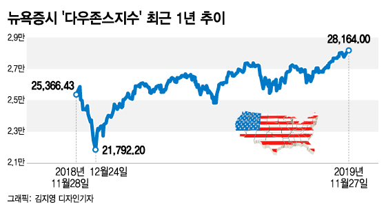 블루칩(우량주) 클럽인 다우존스산업평균지수는 전날보다 42.32포인트(0.15%) 오른 2만8164.00에 거래를 마쳤다.