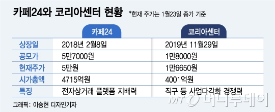 카페24와 코리아센터는 우리 증시 대표적인 전자상거래 플랫폼 기업이다. 카페24는 2018년, 코리아센터는 2019년 상장했다. 비교적 상장한 지 오래된 기업은 아닌데, 지난해 나란히 주가 측면에선 고전했다. 전자상거래 시장 성장이 지속되는 가운데 플랫폼 지배력을 앞세운 두 기업의 앞으로 행보가 주목된다.
