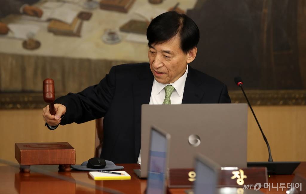 ![[서울=뉴시스]김선웅 기자 = 이주열 한국은행 총재가 17일 오전 서울 중구 한국은행에서 열린 2020년 첫 금융통화위원회에서 의사봉을 두드리고 있다. 2020.01.17. mangusta@newsis.com / 사진=김휘선 기자 hwijpg@](https://thumb.mt.co.kr/cdn-cgi/image/f=avif/21/2020/02/2020022411061455616_1.jpg)