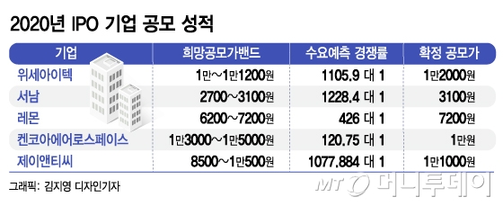 실제로 켄코아에어로스페이스와 비슷한 시기인 지난 19~20일 수요예측을 진행한 제이앤티씨는 경쟁률 1077.88대 1을 기록했다. 제이앤티씨는 스마트폰 등에 적용하는 3D 커버글라스 등 전자 부품을 개발하는 회사로, 지난해 눈에 띄는 실적 성장을 구현한 것으로 파악된다. 코로나19 확산에 따른 우려에도 공모 흥행에 성공한 이유 역시 실적 안정성과 기술 경쟁력 등에서 높은 평가를 받았기 때문으로 해석된다.