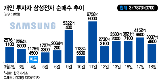 [MT리포트]삼성전자 투자열풍② 개인투자자, 주가 계속 빠지는데 삼성전자 '풀매수'