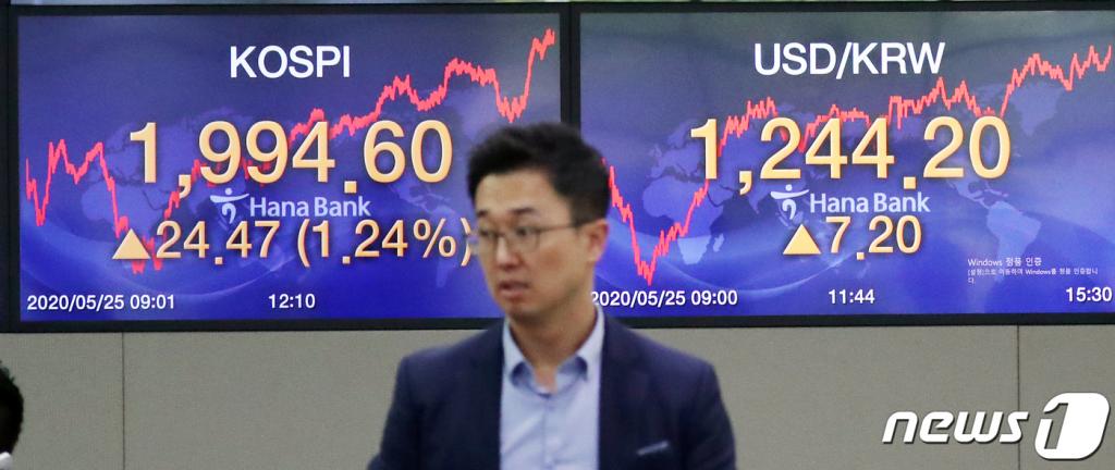 25일 코스피 지수는 전일 대비 24.47포인트(1.24%) 상승한 1994.60에 마감했다. 상승 출발한 지수는 장중 1970선까지 내려앉았으나, 개인 매수세에 힘입어 1990선까지 회복했다.