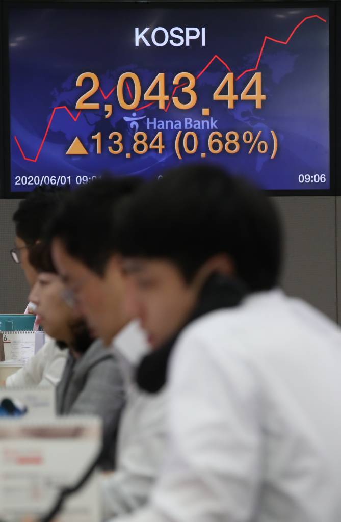 ![[서울=뉴시스] 조수정 기자 = 1일 코스피 지수가 전 거래일보다 7.44p(0.37%) 오른 2037.04로, 코스닥은 3.28p(0.46%) 오른 716.96으로 개장했다. 서울외환시장에서 원달러 환율은 8.2원 내린 1230.3원으로 출발했다. 1일 오전 서울 중구 하나은행 딜링룸에서 직원들이 업무를 보고 있다. 2020.06.01. chocrystal@newsis.com](https://thumb.mt.co.kr/cdn-cgi/image/f=avif/21/2020/06/2020060115405377542_3.jpg)