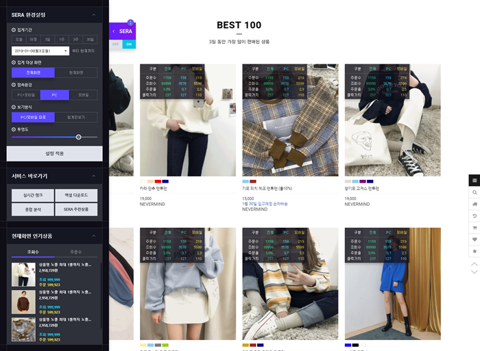 글로벌 전자상거래 플랫폼 기업카페24(25,750원 ▼1,200 -4.45%)는 빅데이터 기반 실시간 상품 반응 분석 서비스 '세라'(SERA, Specialized and Enhanced Realtime Admin)를 해외 직접 판매 쇼핑몰에서 사용할 수 있게 지원한다고 10일 밝혔다.