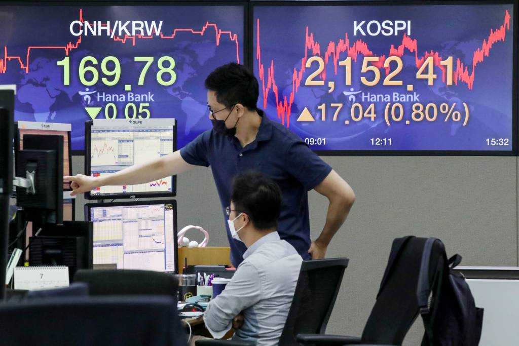 ![[서울=뉴시스]김병문 기자 = 코스피 지수가 전 거래일(2135.37)보다 17.04포인트(0.80%) 오른 2152.41에 장을 마감한 3일 오후 서울 중구 하나은행 딜링룸 전광판에 지수가 표시되고 있다. 이날 코스닥 지수는 전 거래일(742.55)보다 9.63포인트(1.30%) 오른 752.18에, 원·달러 환율은 전 거래일(1200.0원)보다 1.4원 내린 1198.6원에 마감했다. 2020.07.03. dadazon@newsis.com](https://thumb.mt.co.kr/cdn-cgi/image/f=avif/21/2020/07/2020070316225417512_1.jpg)