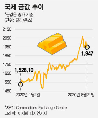 8월 현재 금값은 연초 1온스당 1500달러에서 1950달러 정도로 30% 상승했고 비트코인 가격은 연초 7180달러 수준에서 1만1680달러까지 60% 이상 급등했다. 7월 이후 하반기 들어 더 가파르게 상승했다.