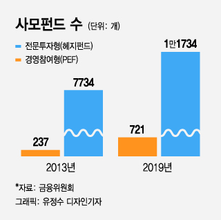 2015년 10월 금융당국이 내놓은 사모펀드 활성화 대책을 계기로 너도 나도 손쉽게 운용사를 만들어 각양각색의 펀드를 출시했다. 당시 적격투자자 범위도 확대됐다.