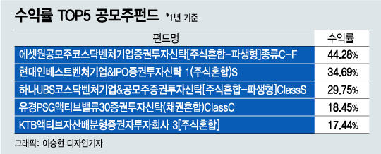 이는 최근 공모주가 폭발적인 인기를 끌며 상당수 자금이 공모주펀드에 유입된 영향이다. 금융정보업체 에프앤가이드에 따르면 최근 3개월 간 국내 113개 공모주펀드의 설정액은 1조6683억원 증가했다. 이는 같은 기간 국내주식형펀드에서 6조원이 넘게 빠져나간 것과 대조된다.
