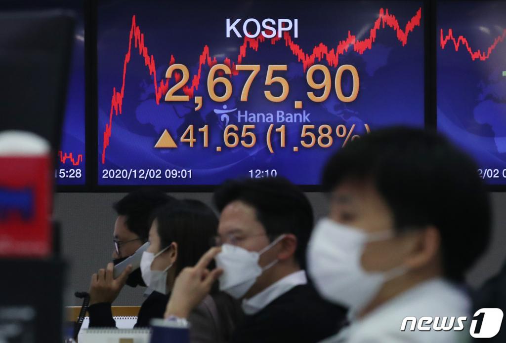 2일 코스피지수는 전 거래일 대비 41.65포인트(1.58%) 오른 2675.9로 장을 마감했다. 사상 최고치다. 장중 한때 2677.26까지 치솟았다. 업종별로는 수출주인 전기전자(2.92%)와 경기 민감주인 비금속광물(3.11%)이 큰 폭으로 올랐다.