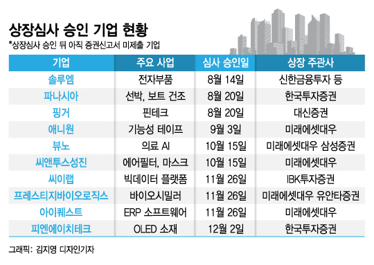 7일 관련업계에 따르면 이미 한국거래소의 상장 심사를 통과하고 증권신고서 제출을 앞두고 있는 기업으로 솔루엠, 애니원, 프레스티지바이오로직스 등이 있다.