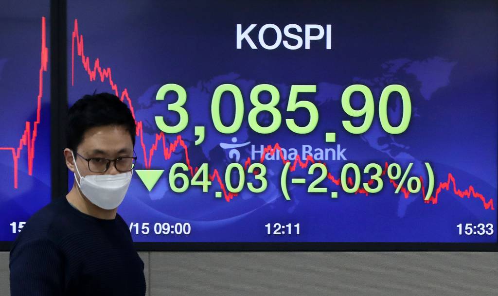 15일 코스피는 전일 대비 64.03포인트(2.03%) 내린 3085.90에 마감했다. 상승 출발한 코스피는 기관 외인의 차익실현 매물로 하락 전환, 공방 끝에 3100선이 무너졌다.