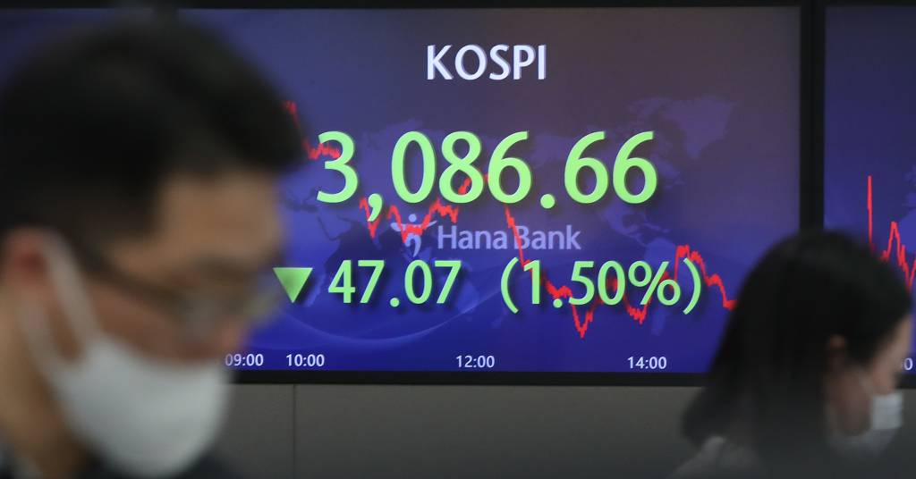 코스피는 전날보다 47.07포인트(1.50%) 내린 3086.66으로 마감했다. 이틀 연속 하락하면서 3100선 아래로 내려왔다. 이달 9일 이후 5거래일 만이다. 오전까지만 해도 상승과 하락을 오갔지만 오후 들어 낙폭을 키웠다.