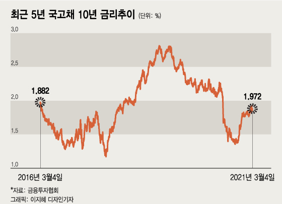 4일 국고채 10년물 금리가 2%에 육박할 정도로 오르면서 국내에서도 인플레이션(물가상승)에 대한 우려가 크다.