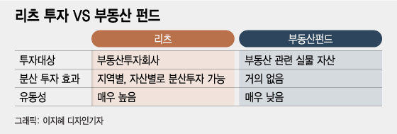 리츠(REITs·부동산투자회사)와 부동산펀드는 어떻게 다를까.