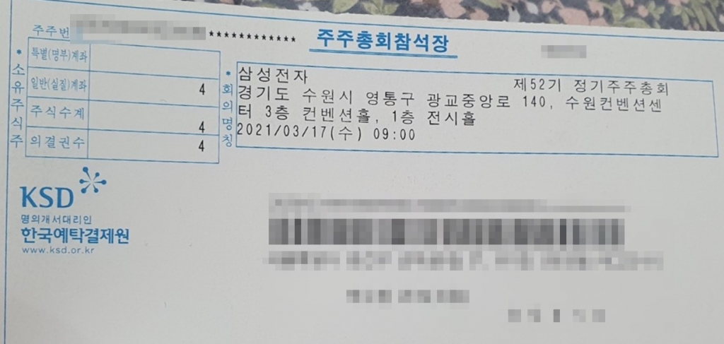 또 우선주 등 주식 발행 당시 정관에 의결권이 없는 주식을 산 투자자들은 주총에 참여할 수 없다. 가령 삼성전자우 주주의 경우 주총 소집통지서를 못 받는 것이 당연하다.