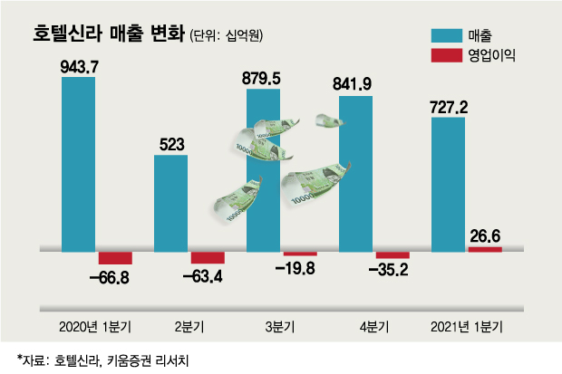 백신 접종이 더 보편화되고 휴가 시즌이 겹칠 3분기에는 호텔·레저 부문의 선전을 기대할 수 있다는 예측도 있었다. 이지영 NH투자증권 연구원은 "3분기부터는 호텔이 성수기에 진입하며 흑자전환할 것으로 예상된다"며 "실적 레벨이 한 단계 높아질 것"이라고 전망했다.