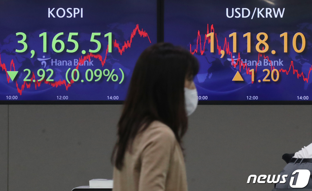 코스피는 전날보다 2.92포인트(0.09%) 내린 3165.51로 마감했다. 장 초반 3140선까지 떨어졌지만 기관의 순매수에 힘입어 낙폭을 줄였다.