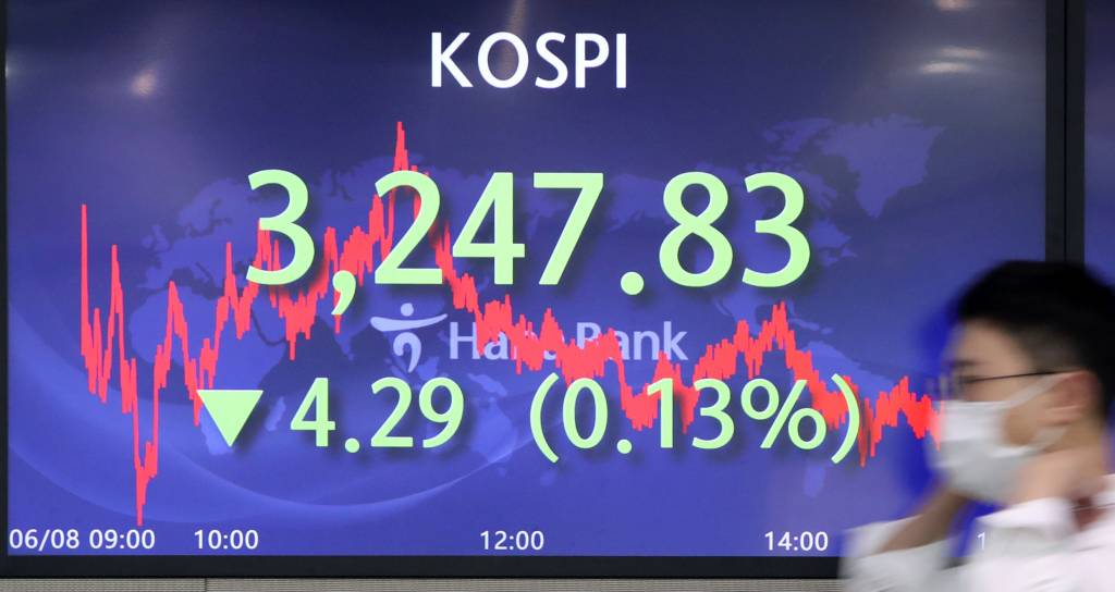 ![[서울=뉴시스]박주성 기자 = 코스피가 전 거래일(3252.12)보다 4.29포인트(0.13%) 내린 3247.83에 마감한 8일 오후 서울 중구 하나은행 딜링룸에서 딜러들이 업무를 보고 있다. 2021.06.08. park7691@newsis.com](https://thumb.mt.co.kr/cdn-cgi/image/f=avif/21/2021/06/2021060816132314051_1.jpg)
