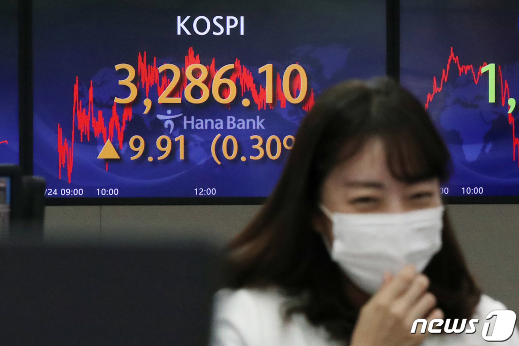 코스피는 전날보다 9.91포인트(0.30%) 오른 3286.10으로 마감했다. 지난 16일 기록했던 최고치 3278.68을 6거래일 만에 다시 경신했다. 기관이 1375억원 순매수한 반면 개인과 외국인이 각각 445억원, 1051억원 순매도했다.