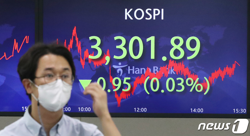 코스피는 전 거래일보다 0.95포인트(0.03%) 내린 3301.89로 거래를 마쳤다. 채 1포인트도 하락하지 않으면서 지난 25일에 이어 2거래일 연속으로 3300선에서 마무리했다.