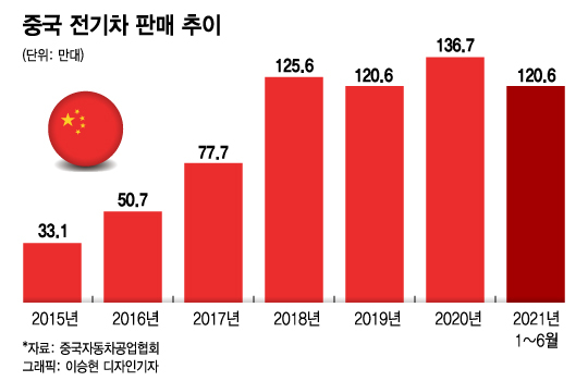 특히 눈여겨봐야 할 건 전기차다. 올해 상반기 중국 전기차 판매량은 120만6000대에 달했다. 6월 월간 판매량은 25만6000대로 사상 최고치를 기록했으며 중국 자동차공업협회는 올해 판매량이 240만대를 돌파할 것으로 예상하고 있다.